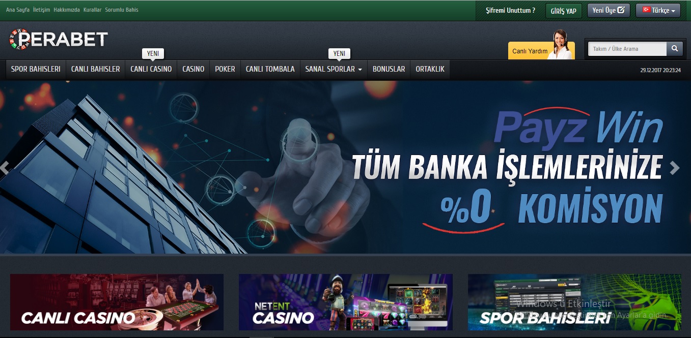 Eski kulağı kesik bahisçilerin yakından tanıyacakları Perabet bahis sitesi hala hizmetlerine devam ediyor. Yıllardır Pronet Gaming altyapısı kullanan canlı bahis sitesi çizgisini hiçbir zaman bozmadı. Ancak çok fazla üyeye sahip olmanın da bazı dezavantajları var. Çok fazla üyeye sahip olması Perabet bahis sitesinin finansal işlemler konusunda biraz ağır kalmasına yol açıyor. Eğer anında para yatırıp çekmek isterseniz Perabet bahis sitesi sizlere hitap etmeyebilir. Bu durumdaki bahisçilere tavsiye edeceğimiz canlı bahis sitesi Sekabet bahis sitesidir. Sekabet bahis sitesi Montenegro lisanslı olup son derece güvenilir bir bahis sitesidir ve Erotik casino bölümüne sahiptir.